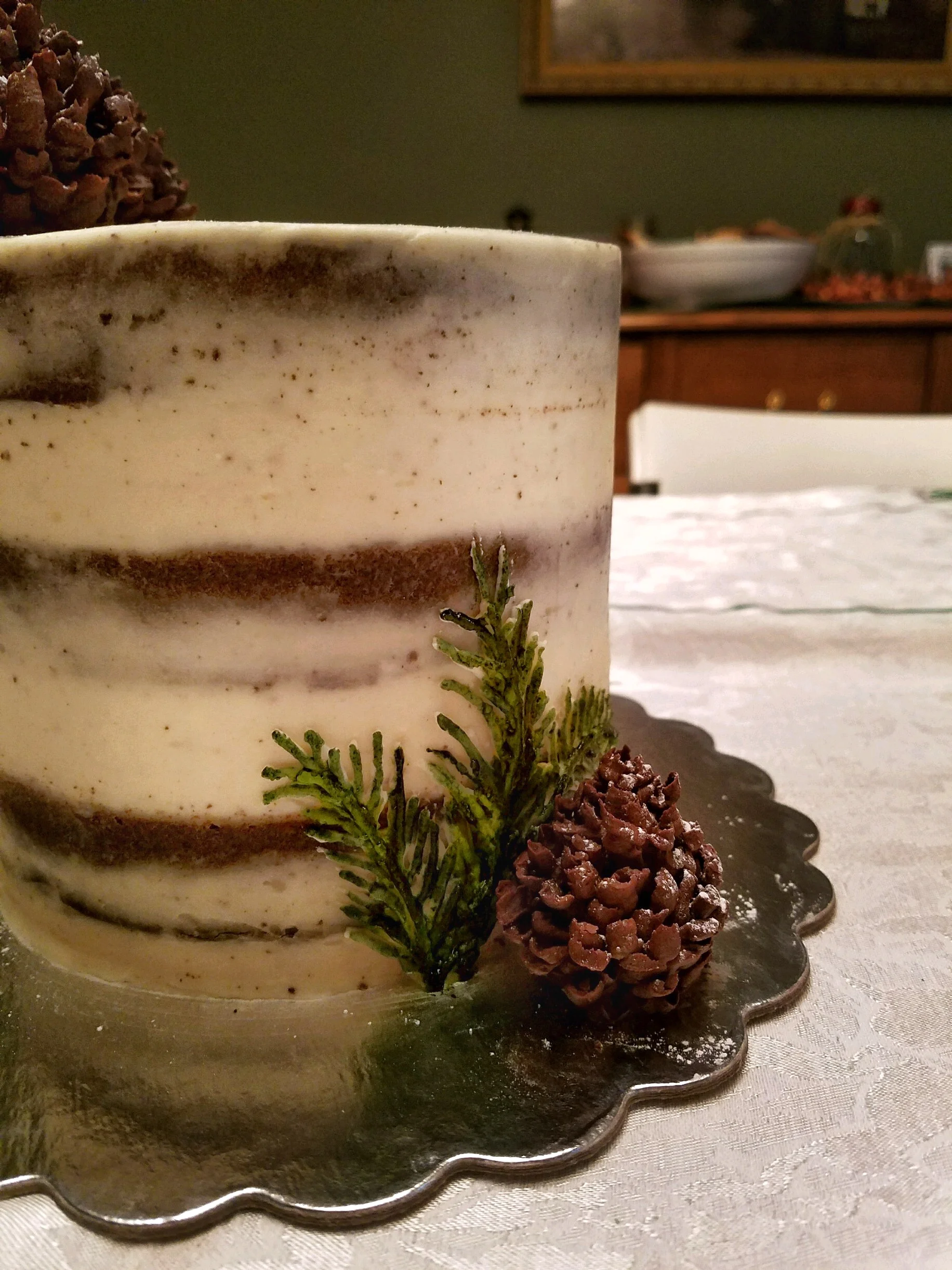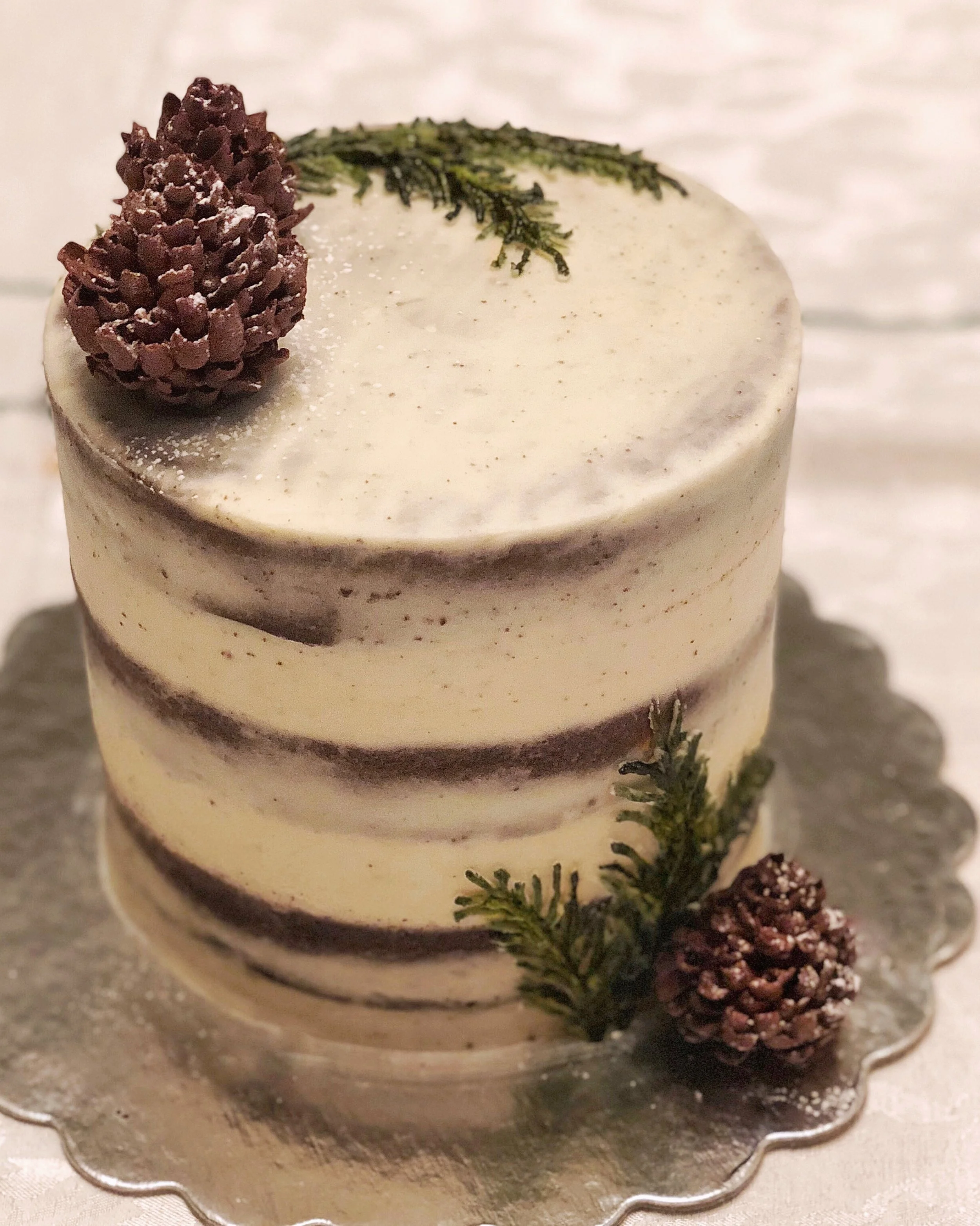 This rustic-yet-elegant buttercream cake was perfect for a holiday celebration. It’s adorned with hand-piped greenery and handmade chocolate pinecones. The best part.. it’s ALL sugar-free! As always, it is made with all natural ingredients.